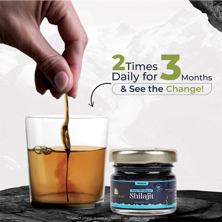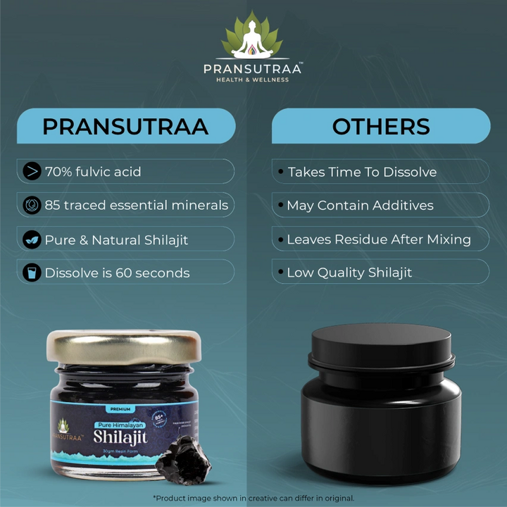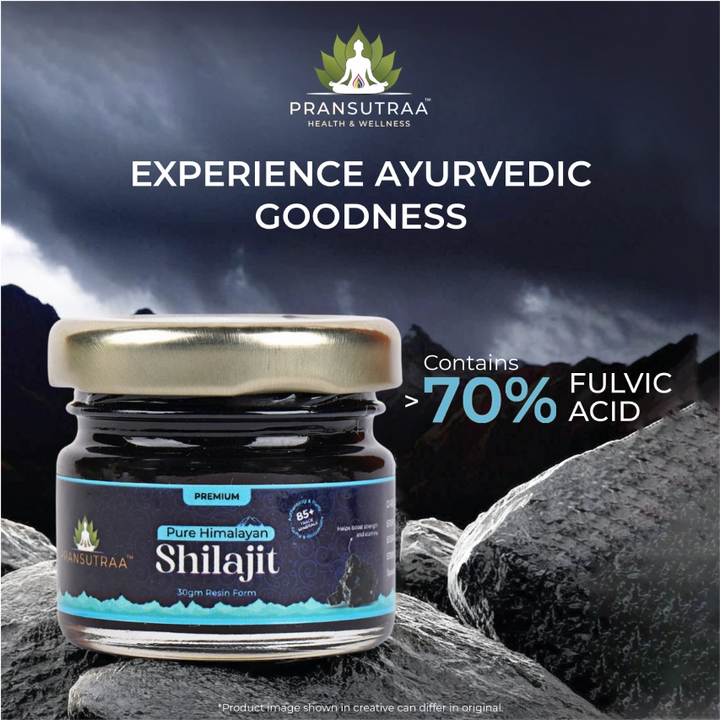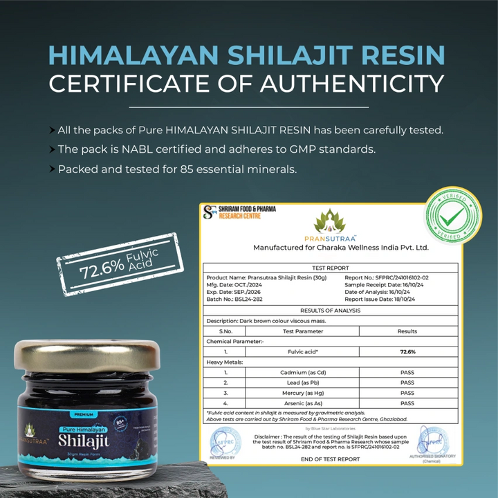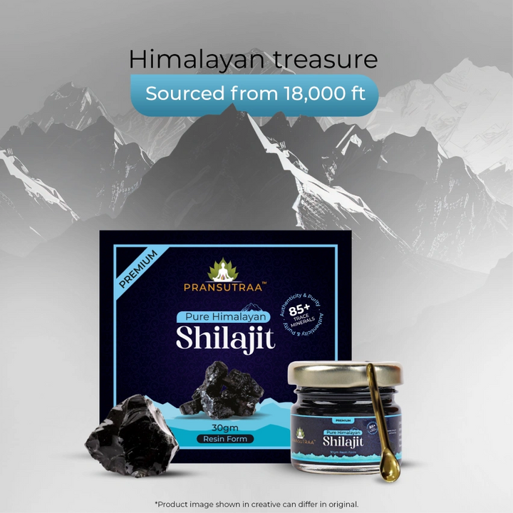 Our Pransutraa Himalayan Shilajit is an NABL-certified lab product and adheres to GMP standards. It is packed with over 85 traced essential minerals, including potassium, calcium, iron, silica, and many more. As a natural source of nutrients, it helps the body manage stress, making it a natural source of minerals and nutrients.